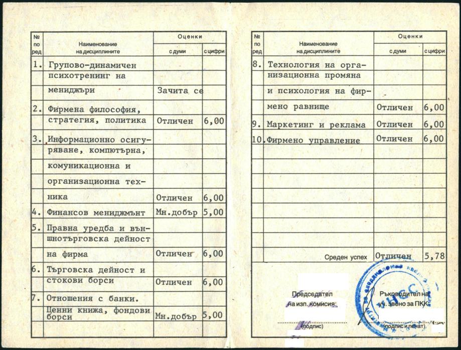 за премината следдипломна специализация по Основи на фирмения мениджмънт
