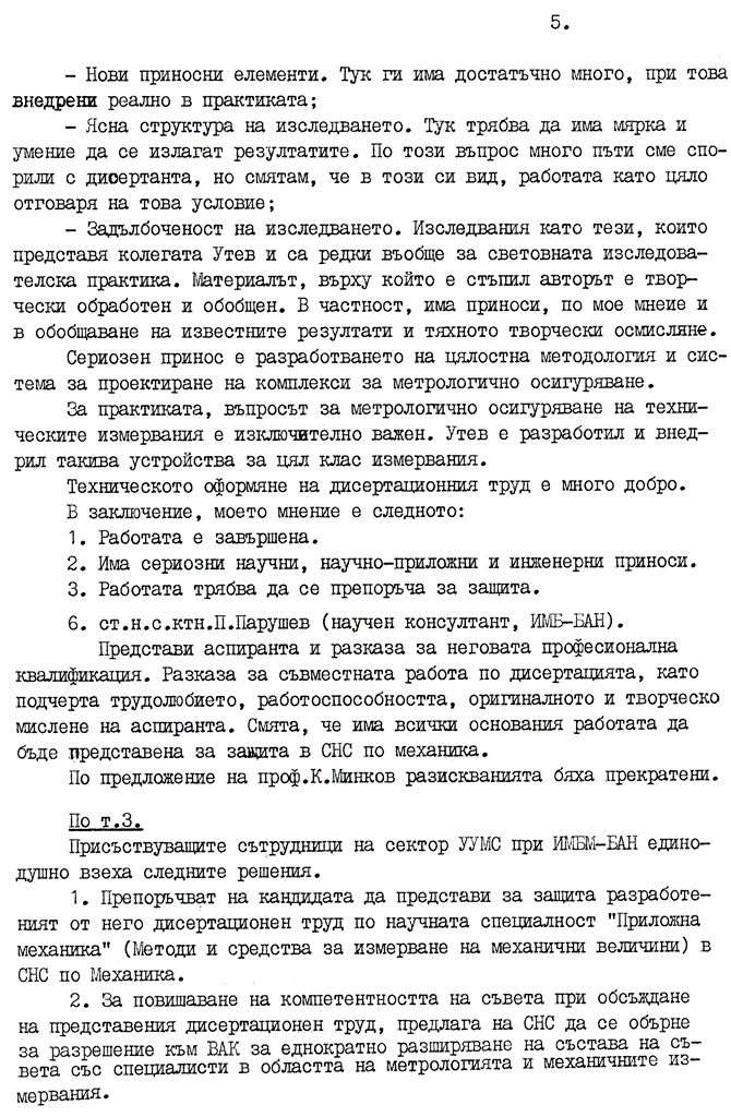 от предварителна защита на кандидатска дисертация за получаване на научна степен "Кандидат на техническите науки" /сега: "Доктор по техника"/